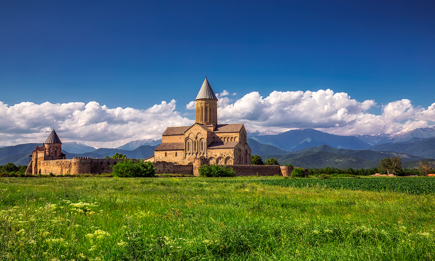 Your first stop will be Jvari Monastery, located on a mountaintop with stunning views overlooking Mtkvari and Aragvi rivers. Next you will visit Svetitskhoveli Cathedral built in the 11th century, after which you will take a pleasant walk through traditional souvenirs market down to the riverbank where you will have lunch in a beautiful flower garden. Next you will take a short drive through a picturesque mountain road to a limestone canyon in which you will find a 6th century monastic complex of Shio-Mgvime.