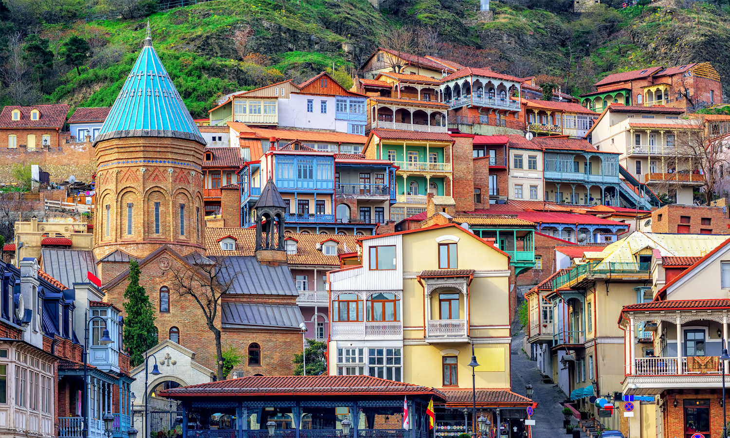 Your Tbilisi walking tour will start with major landmarks such as: Metekhi Church, Narikala Fortress, Abanotubani district, Leghvtakhevi Waterfall, Kaleidoscope house and stunning Rezo Gabriadze Theater.